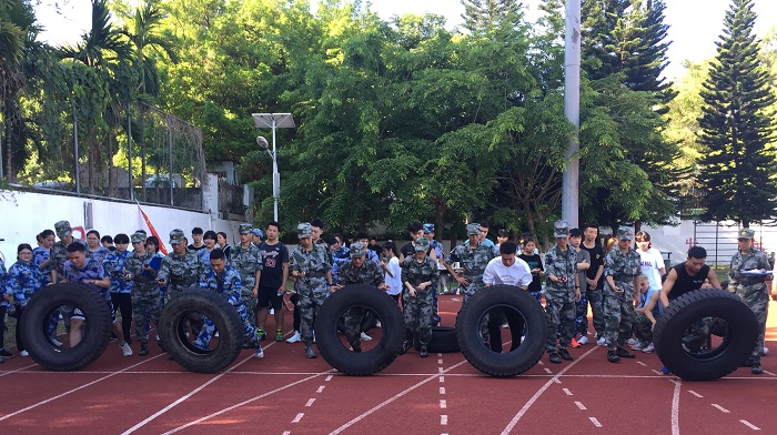 頭頂烈日,大汗淋漓,300多名學(xué)生戰(zhàn)斗員參加了形式多樣、“戰(zhàn)味”濃郁的搭建81式軍用帳篷、手榴彈投擲、戰(zhàn)術(shù)基礎(chǔ)動作、“蛇”行跑接力、“彈藥箱”搬運接力、翻輪胎等軍事科目賽事。田徑運動場如同軍營訓(xùn)練場,學(xué)生戰(zhàn)斗員一次次挑戰(zhàn)速度和力量極限,兵味十足,斗志昂揚。