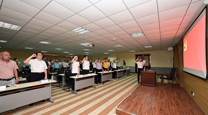 全體師生黨員一起重溫入黨誓詞(黨委宣傳部供圖)