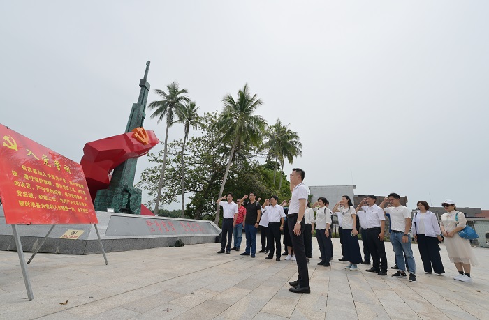 在椰子寨戰(zhàn)斗歷史陳列館,大家觀閱了王文明、楊善集、陳永芹等革命先烈的生平事跡,從大量資料和圖片,學(xué)習(xí)了瓊崖縱隊(duì)從無(wú)到有、發(fā)展壯大的光輝歷程,共同重溫椰子寨戰(zhàn)斗光輝歷史,緬懷革命先烈,汲取前進(jìn)力量。在椰子寨戰(zhàn)斗紀(jì)念廣場(chǎng),大家瞻仰了椰子寨戰(zhàn)斗主題雕塑,深刻理解雕塑寓意。全體黨員在周炳才的帶領(lǐng)下重溫入黨誓詞。