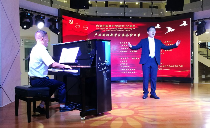 蔡建東副教授是一名有著24年黨齡的黨員,具有20多年的聲樂教學(xué)經(jīng)驗(yàn),為了進(jìn)一步激發(fā)學(xué)生愛黨愛國(guó)的熱情,采用實(shí)踐教學(xué)的形式舉辦了這場(chǎng)“唱支山歌給黨聽”師生音樂會(huì)。音樂會(huì)上,蔡建東副教授與學(xué)生們一起深情演唱了《唱支山歌給黨聽》《把一切獻(xiàn)給黨》《沒有共產(chǎn)黨就沒有新中國(guó)》等歌曲,并對(duì)學(xué)生的演唱進(jìn)行了精彩的點(diǎn)評(píng),給予了專業(yè)的聲樂示范。