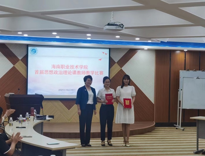 (李琳娜為一等獎獲獎教師頒獎 思政教學部供圖)