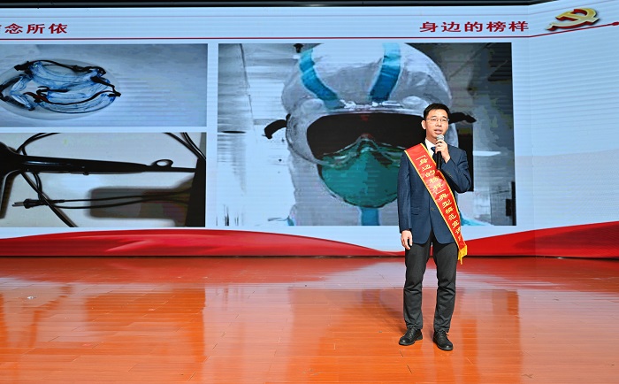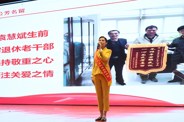 (主持人李若楠講述袁慧斌生前事跡 黨委宣傳部供圖)
