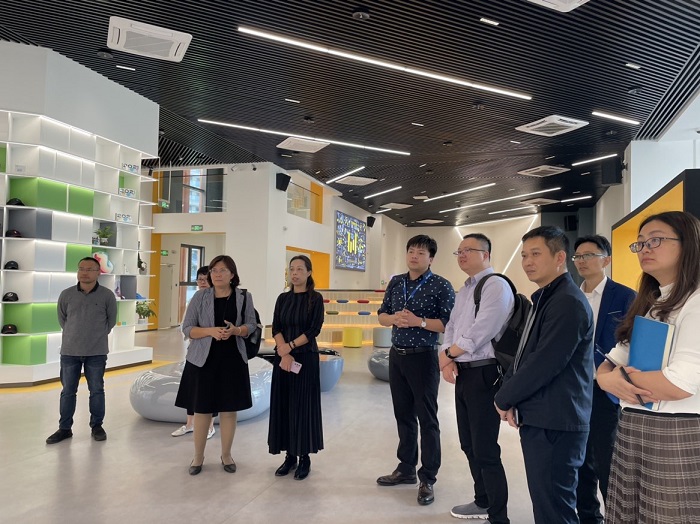 在海南生態(tài)軟件園集團(tuán)有限公司行政人力資源中心總監(jiān)金利的陪同下,參訪團(tuán)一行實(shí)地考察了海南生態(tài)軟件園綜合展示體驗(yàn)中心、抖音直播基地、唯品會(huì)(海南)電子商務(wù)有限公司、海南元游信息技術(shù)有限公司、沃克公園辦公區(qū),并與海南生態(tài)軟件園集團(tuán)有限公司、聯(lián)萌傳媒海南分公司、廣善傳媒海南公司、唯品會(huì)、藍(lán)夢(mèng)物業(yè)等企業(yè)負(fù)責(zé)人及相關(guān)人員進(jìn)行座談交流。
