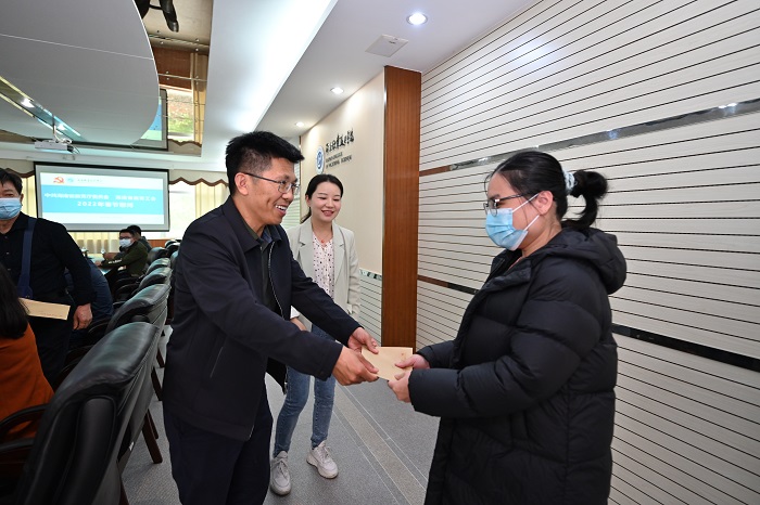 范緒鋒首先向我校全體教職員工、廣大師生轉(zhuǎn)達(dá)了省教育廳黨委和省教育工會(huì)的春節(jié)問候。他希望海職院的廣大教職員工立足崗位,培養(yǎng)更多高素質(zhì)應(yīng)用型人才,更好服務(wù)海南自貿(mào)港建設(shè)發(fā)展。隨后,范緒鋒代表省教育廳黨委和省教育工會(huì)為我校困難黨員、老黨員、先進(jìn)模范、派駐掛職人員、值班留守人員及生活困難人員發(fā)放了慰問金。