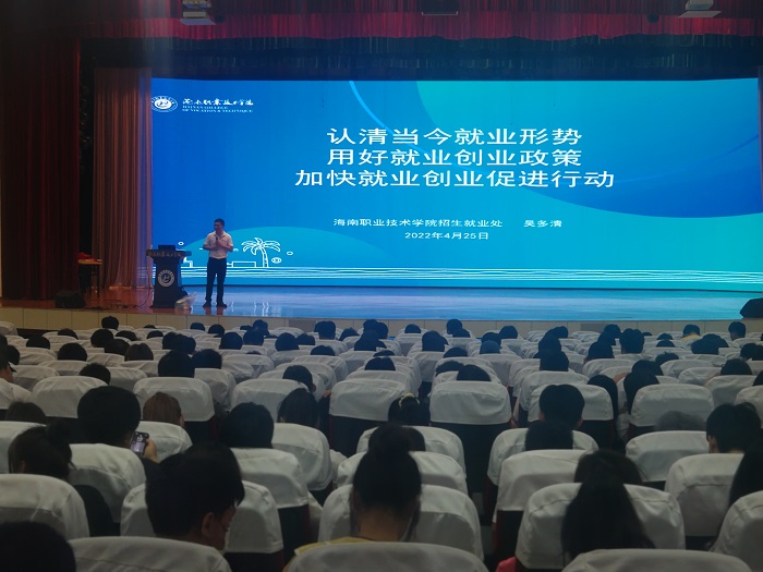 4月25日下午,招生就業(yè)處在大禮堂舉辦以“認(rèn)清當(dāng)今就業(yè)形勢(shì),用好就業(yè)創(chuàng)業(yè)政策,加快就業(yè)創(chuàng)業(yè)促進(jìn)行動(dòng)”為主題的就業(yè)創(chuàng)業(yè)政策宣傳講座。招生就業(yè)處副處長(zhǎng)吳多清主講。