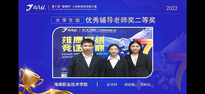 近日,第七屆“雄鷹杯”全國小動物醫(yī)師技能大賽總決賽落下帷幕。我校熱帶農(nóng)業(yè)技術(shù)學院畜牧獸醫(yī)專業(yè)易新、楊琛、文香慧、李怡4位同學所組成的參賽代表隊,在畜牧獸醫(yī)專業(yè)師麗敏、彭宇軒、馬林鳳三位老師的指導下,經(jīng)過兩天緊張激烈角逐,最終榮獲大學生組團體二等獎。師麗敏、彭宇軒、馬林鳳榮獲優(yōu)秀輔導老師獎二等獎。