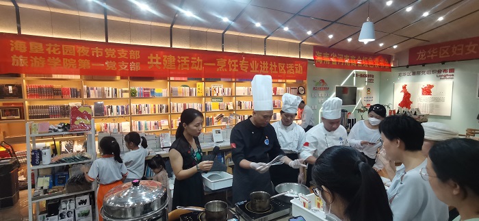 為慶祝中國共產黨成立101周年,6月28日,旅游學院第一黨支部學院第一黨支部組織烹飪專業(yè)師生到共建單位海墾花園夜市開展斑斕糕制作的社區(qū)服務活動。