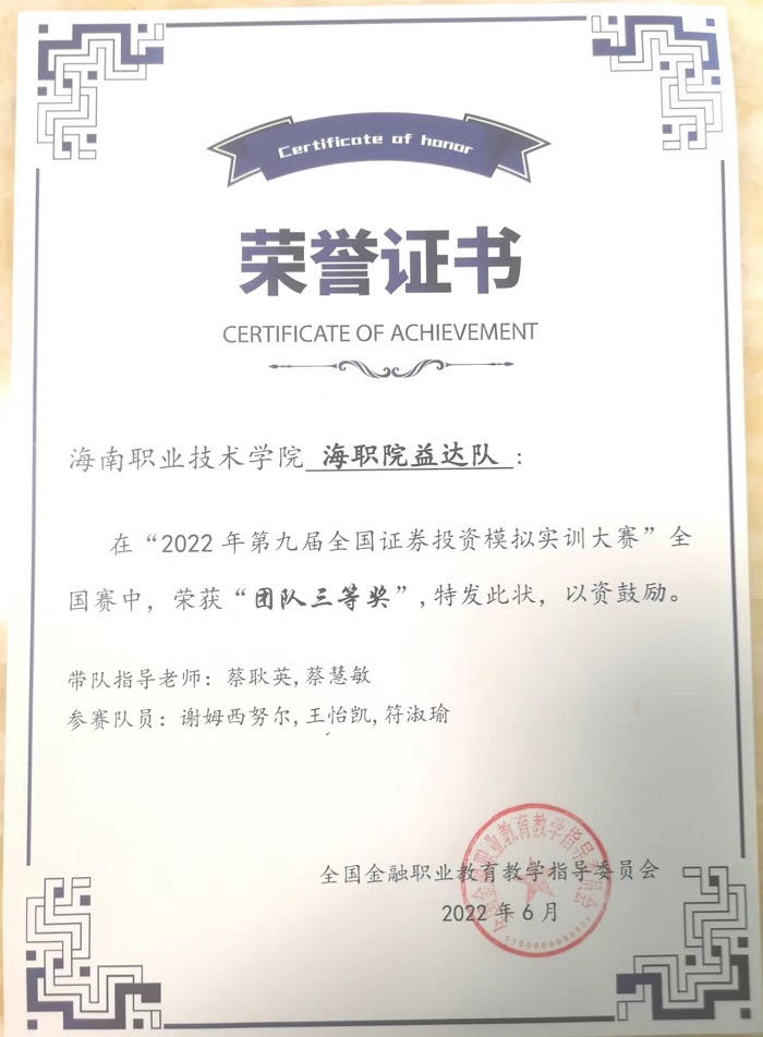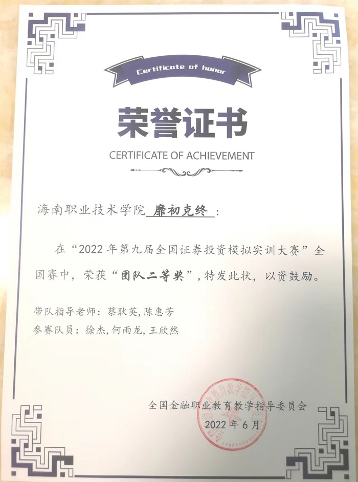 近日,由全國金融職業(yè)教育教學(xué)指導(dǎo)委員會主辦、河南經(jīng)貿(mào)職業(yè)學(xué)院承辦,深圳市天擇教育科技有限公司技術(shù)支持的2022年第九屆全國證券投資模擬實訓(xùn)大賽落下帷幕。