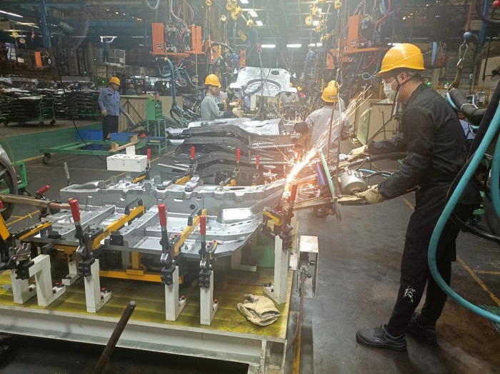 學生在海南海馬汽車有限公司焊接生產(chǎn)崗位學習(工信學院供圖)