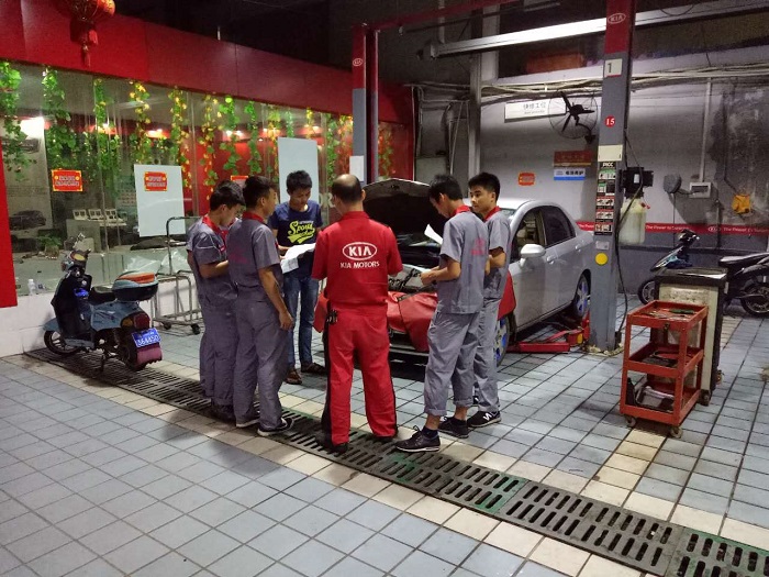 學生在東風悅達起亞4S店參加崗位技能學習(工信學院供圖)