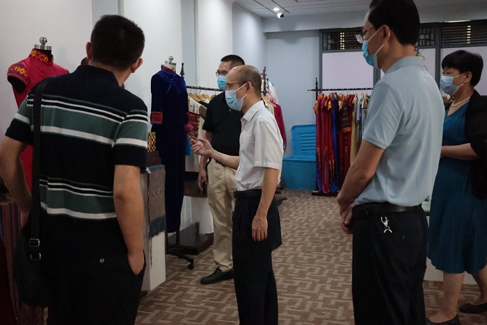 座談會(huì)前,豐圣少一行還參觀了我校黎錦展覽館。豐局長(zhǎng)對(duì)我校少數(shù)民族特色文化人才培養(yǎng)工作給予了充分的肯定,并提出依托線上平臺(tái)開展定制化營(yíng)銷的建議,為向中外宣傳海南省黎錦產(chǎn)品與文化貢獻(xiàn)海職力量。