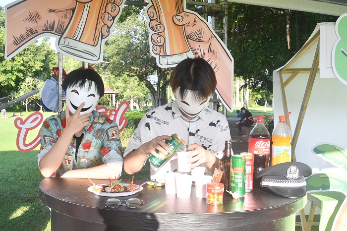 (我校青年志愿者扮演“壞人”給觀眾“下毒”  校團(tuán)委供圖)