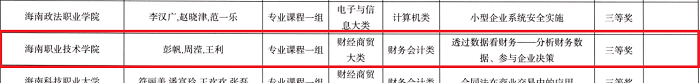 近日,海南省教育廳公布了2023年海南省高等職業(yè)院校技能大賽教學(xué)能力比賽決賽結(jié)果,海職院參賽教師團(tuán)隊(duì)從激烈的競爭中脫穎而出,共獲得一等獎(jiǎng)2項(xiàng),三等獎(jiǎng)3項(xiàng)。其中,通識教育學(xué)院朱麗萍團(tuán)隊(duì)一舉斬獲公共基礎(chǔ)組一等獎(jiǎng)第一名,創(chuàng)造了海職院教師團(tuán)隊(duì)省賽歷史最好成績。