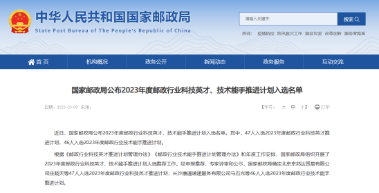 國家郵政局網站截圖(現(xiàn)代供應鏈學院供圖)