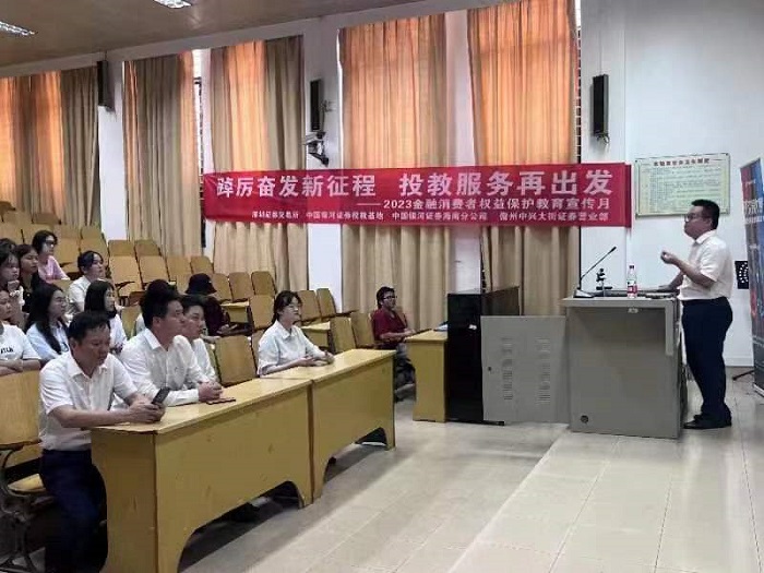 為提升學生新《證券法》全面注冊制和ETF等證券知識水平,幫助同學們了解行業(yè)前景,10月18日下午,我校經(jīng)濟管理學院在行政樓124多媒體教室開展了以“全面注冊制、ETF證券知識”為主題的金融知識講座。本次講座由經(jīng)管學院金融服務(wù)與管理教研室主辦、學校財經(jīng)協(xié)會協(xié)辦。共有來自22級、23級金融服務(wù)與管理專業(yè)的100余名學生參加。