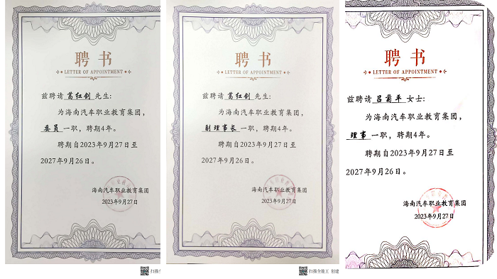 海南汽車職業(yè)教育集團(tuán)聘書(shū)(海職院供圖)