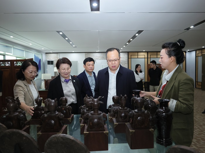 翁波一行參觀我校非遺項(xiàng)目椰雕作品(校務(wù)辦公室供稿)
