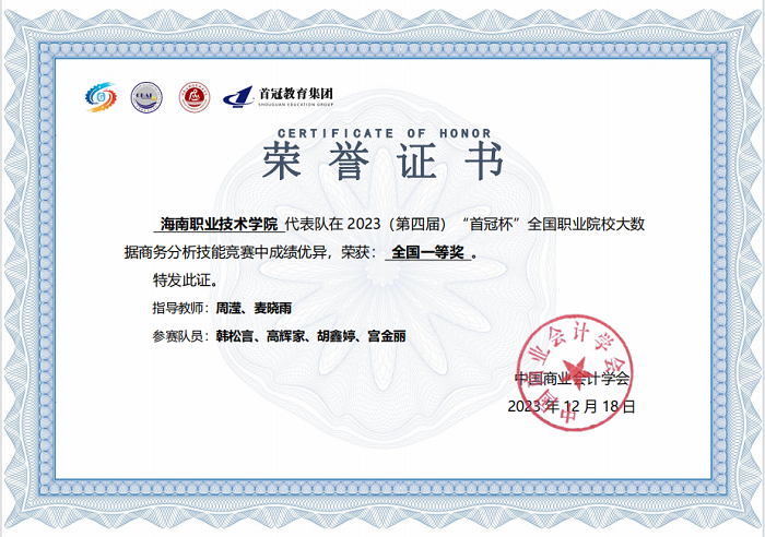 我校代表隊喜獲2023年“首冠杯”大數(shù)據(jù)商務(wù)分析技能大賽(高職組)全國一等獎(經(jīng)管學(xué)院供圖)