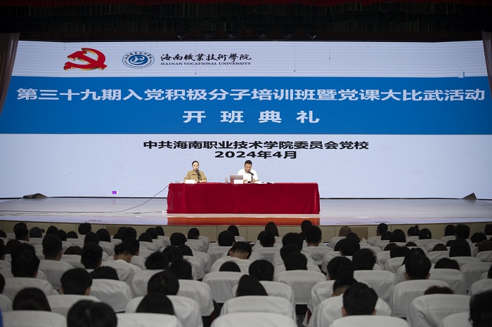 4月7日晚,海職院黨校第三十九期入黨積極分子培訓(xùn)班暨黨課大比武活動(dòng)開班典禮在學(xué)校大禮堂舉行。學(xué)校黨委書記周炳才出席開班儀式并講授中國式現(xiàn)代化專題思政課。