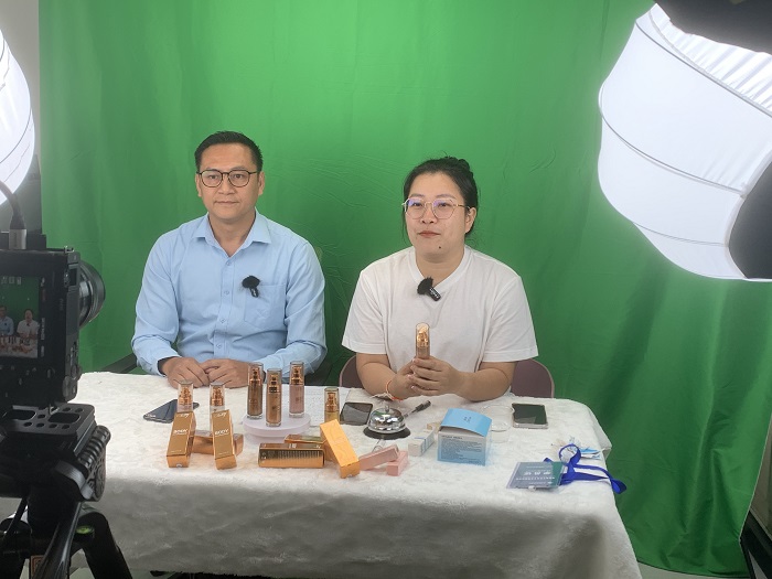 老撾電子商務(wù)專業(yè)師資培訓(xùn)班學(xué)員在我校直播基地學(xué)習(xí)(經(jīng)濟管理學(xué)院供圖)