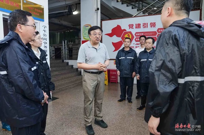 在海南職業(yè)技術學院,馮飛步入學生寢室、食堂,看望部分在校學生并檢查學校生活物資儲備、餐食供應及水電保障等情況,要求全省各類高校嚴格執(zhí)行校領導應急值班值守制度,加強臺風期間校園安全管理,對所有在校學生開展精準查漏,完善緊急情況下生活保障預案,做好在校師生心理疏導工作,共同守護校園安全穩(wěn)定。