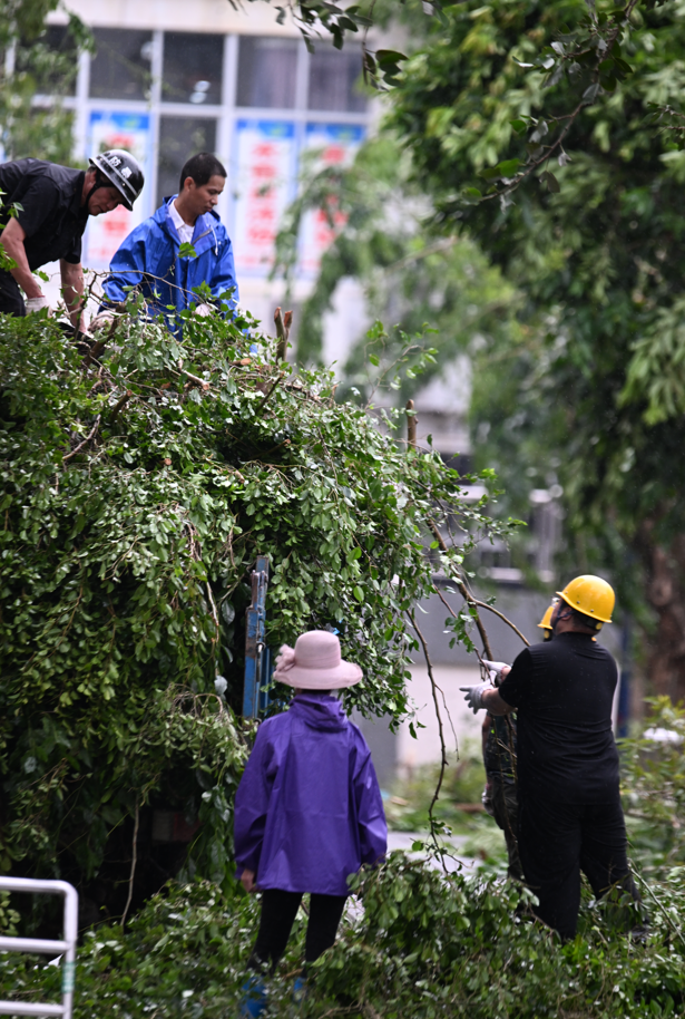 海職人清理路障、檢查電路等