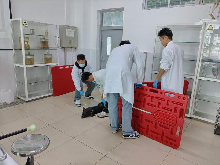 隨后舉行教學(xué)實(shí)驗(yàn)室動(dòng)物失控防護(hù)應(yīng)急處置演練。熱帶農(nóng)業(yè)技術(shù)學(xué)院副院長(zhǎng)師麗敏為在場(chǎng)的師生和觀摩人員詳細(xì)分析了動(dòng)物的習(xí)性,并結(jié)合習(xí)性進(jìn)行了器材的選用講解,詳細(xì)介紹擋板、套索、電動(dòng)趕豬器、寵物防咬護(hù)腿、獸用麻醉吹針等器材使用方式和捕捉具有攻擊行為動(dòng)物時(shí)的操作應(yīng)用。