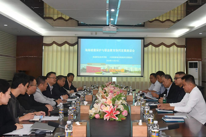 周哲在發(fā)言中表示,海南坡鹿作為海南特有的珍稀物種,也是國家一級保護動物,其保護對于島嶼生態(tài)環(huán)境的可持續(xù)性至關(guān)重要。他指出,生態(tài)保護不僅是政府和保護區(qū)的責(zé)任,也需要社會各界的廣泛參與,尤其是年輕一代的積極行動。雙方深入探討了如何推動生態(tài)保護與職業(yè)教育的深度融合,并就校地合作、社會力量支持以及保護人才培養(yǎng)等方面達成了共識。