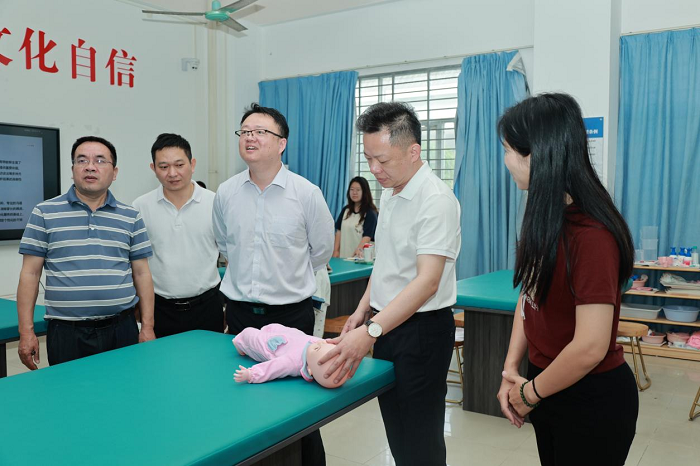 黃銀珍和副校長李琳娜一行實地走訪實訓樓各教學場所。通過觀摩課堂授課、師生訪談等多種方式,詳細了解各實訓室的教學安排、設備運行情況以及學生的學習狀態(tài),并與任課教師交流,了解教學計劃的落實情況和實際需求。黃銀珍強調(diào),要緊密結合行業(yè)實際需求,要深化“崗位化教學”,將課堂與崗位無縫對接。她指出,崗位化教學不僅是理論與實踐的深度融合,更是對學生職業(yè)素養(yǎng)和綜合能力的全方位培養(yǎng),要在教學過程中進一步優(yōu)化課程設計,引入更多真實的工作場景和任務,讓學生在解決實際問題中提升專業(yè)技能和實踐能力。同時,她還強調(diào)要加強課堂教學效果的評估與反饋,通過定期的技能考核、項目匯報和企業(yè)反饋等方式,及時調(diào)整教學策略,確保學生在課堂上學到的知識和技能能夠真正轉化為崗位競爭力。