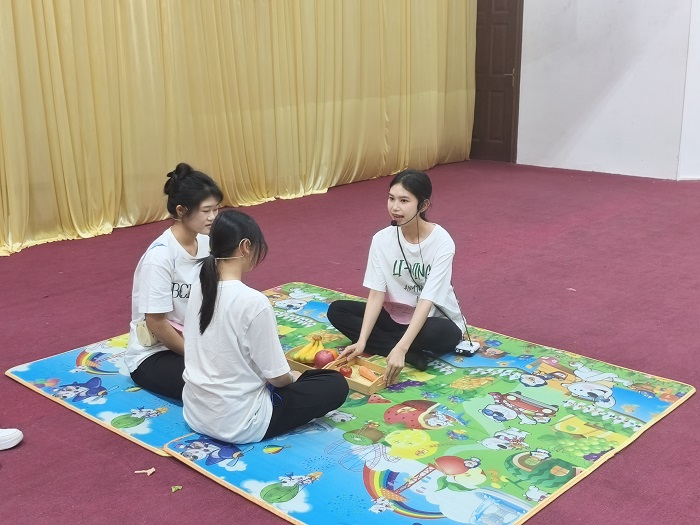 實操環(huán)節(jié)中,學(xué)生三人一組,分工協(xié)作,默契配合,展示了15個創(chuàng)意滿滿、趣味盎然的游戲方案。同學(xué)們不僅在游戲設(shè)計上別出心裁,還在實際操作中展現(xiàn)出了高超的溝通與引導(dǎo)技巧,充分展現(xiàn)出專業(yè)技能、創(chuàng)新思維和團隊協(xié)作能力,現(xiàn)場氣氛熱烈而有序,充分展示了托育服務(wù)職業(yè)教育的成果。