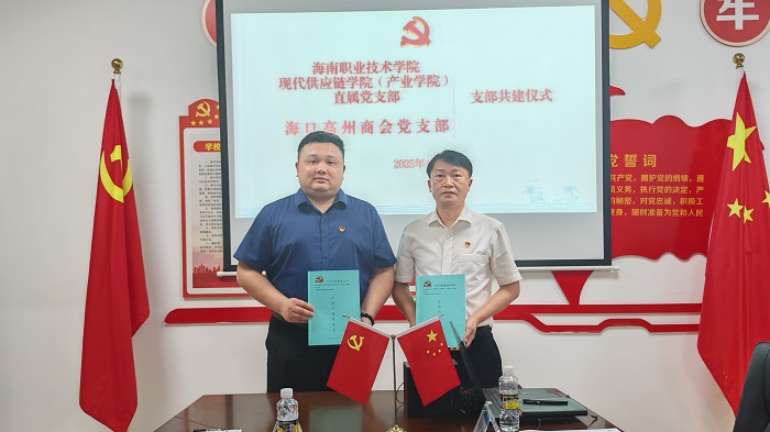現(xiàn)代供應(yīng)鏈學(xué)院直屬黨支部與??诟咧萆虝?huì)黨支部舉行“支部共建聚合力、攜手共進(jìn)譜新篇”簽約儀式