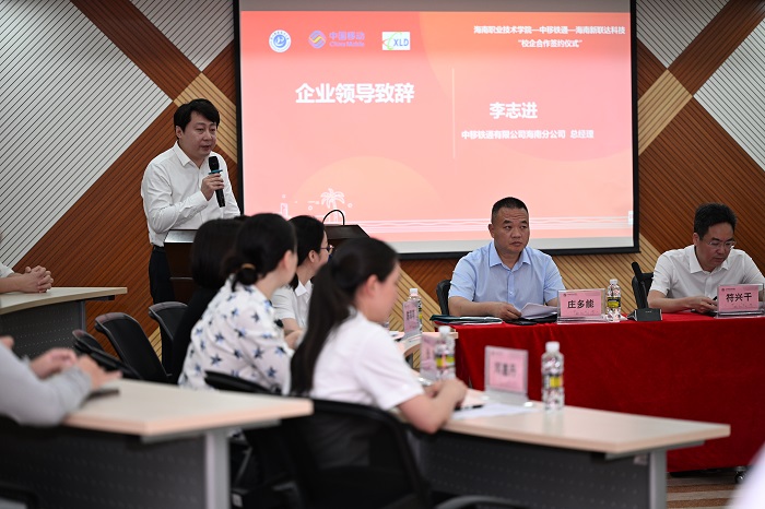 海職院與中移鐵通有限公司海南分公司、海南新聯(lián)達(dá)科技有限公司共同舉辦產(chǎn)教融合戰(zhàn)略合作簽約儀式