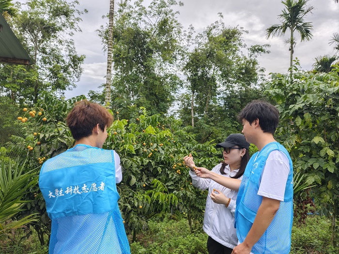 帶隊(duì)老師向?qū)W生講解果樹種植情況(熱農(nóng)學(xué)院供圖)
