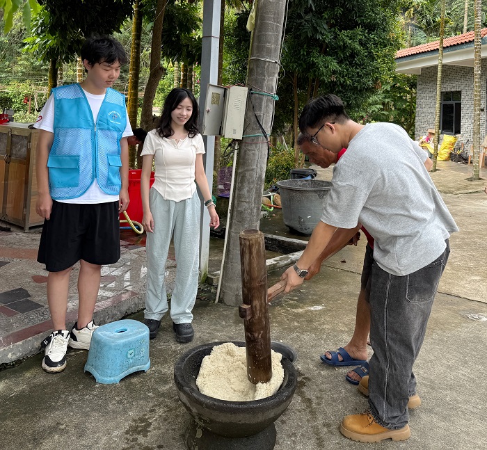 帶隊(duì)老師與學(xué)生體驗(yàn)傳統(tǒng)工藝(熱農(nóng)學(xué)院供圖)