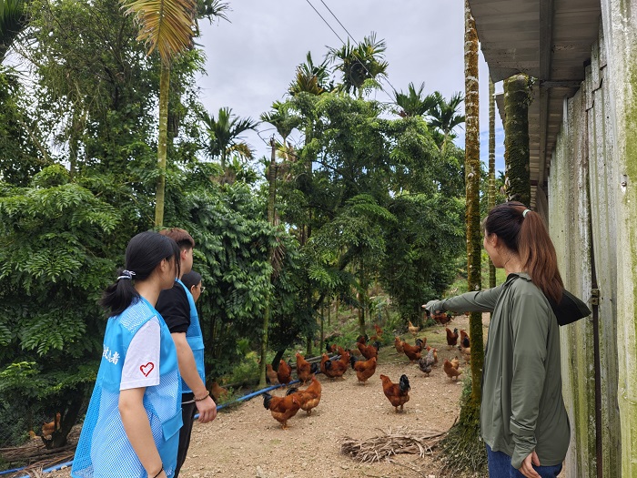 帶隊(duì)老師向團(tuán)隊(duì)成員講解飼養(yǎng)雞群相關(guān)知識(shí)