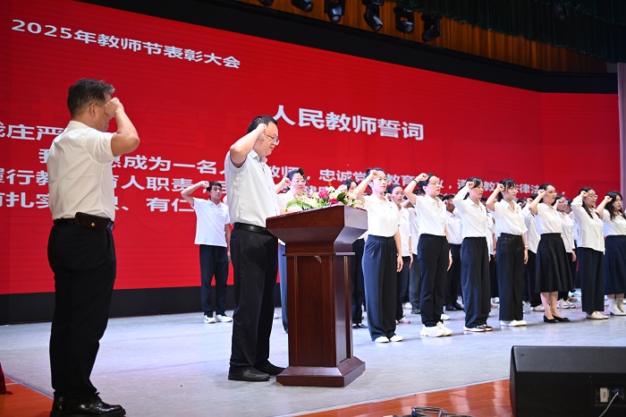周炳才指出,教育是一場溫暖的守望,更是一場共同的遠(yuǎn)征。“躬耕教壇·強校有我”,這不只是一句口號,更是一份承諾、一種擔(dān)當(dāng)。希望廣大教師大力弘揚教育家精神,心懷“國之大者”,積極擔(dān)當(dāng)作為,以德立身、以德立學(xué)、以德施教,安心從教、熱心從教、舒心從教、靜心從教,爭做“四有”好老師,當(dāng)好學(xué)生成長的引路人,努力培養(yǎng)擔(dān)當(dāng)民族復(fù)興大任的時代新人。希望同學(xué)們常懷感恩之心,尊師重道、勤學(xué)篤行,努力成長為具有專業(yè)精神、職業(yè)精神和工匠精神的時代弄潮兒。