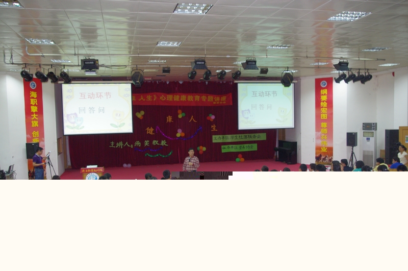 1126晚,由中國(guó)著名心理學(xué)家湯笑教授帶來(lái)的主題為“《健康人生》心理健康” 專題講座在我校大階梯生動(dòng)開(kāi)講,本次活動(dòng)由海南省營(yíng)養(yǎng)學(xué)會(huì)、海南職業(yè)技術(shù)學(xué)院學(xué)生社團(tuán)聯(lián)合會(huì)以及海南職業(yè)技術(shù)學(xué)院營(yíng)養(yǎng)協(xié)會(huì)聯(lián)合舉辦。海南省營(yíng)養(yǎng)學(xué)會(huì)培訓(xùn)中心李威程主任、海南省營(yíng)養(yǎng)學(xué)會(huì)金牌講師謝乙源老師、歐陽(yáng)志平老師、校團(tuán)委袁媛書(shū)記、各協(xié)會(huì)會(huì)長(zhǎng)以及海口各新聞媒體的朋友出席本次講座。