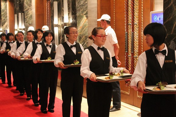 我們的志愿者團隊分為嘉賓事務組、媒體中心組和運輸接待組,活躍在酒店、會所及球場上。最繁忙的應屬嘉賓事務組,他們每個人必須知道球會的布局,及時掌握與賽事有關(guān)的交通、時間等方面的信息。最苦的應屬運輸接待組,他們終日站在太陽下疏導大批前來看球的觀眾,使球會能有一個良好的觀賽秩序。對于所有的運輸組志愿者,正如組員劉小琳所說的:“只要觀眾能開開心心的來,高高興興的走,我們的苦累也是值得的!”最累的志愿者,應屬來自我院09級商務日語班這支特殊的志愿者隊伍,他們服務在酒店的餐廳,培訓時間短、工作時間長、勞動強度大。但是無論是前臺接待還是端水傳菜,我們的志愿者無不勤勤懇懇,保障了酒店較高的服務質(zhì)量。觀瀾湖球會為涉外商務管理學院的實習基地,學生志愿者們在實習基地得到了學習和鍛煉。
