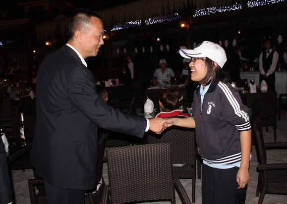 圖四:觀瀾湖球會執(zhí)行董事朱鼎耀與優(yōu)秀志愿者合影